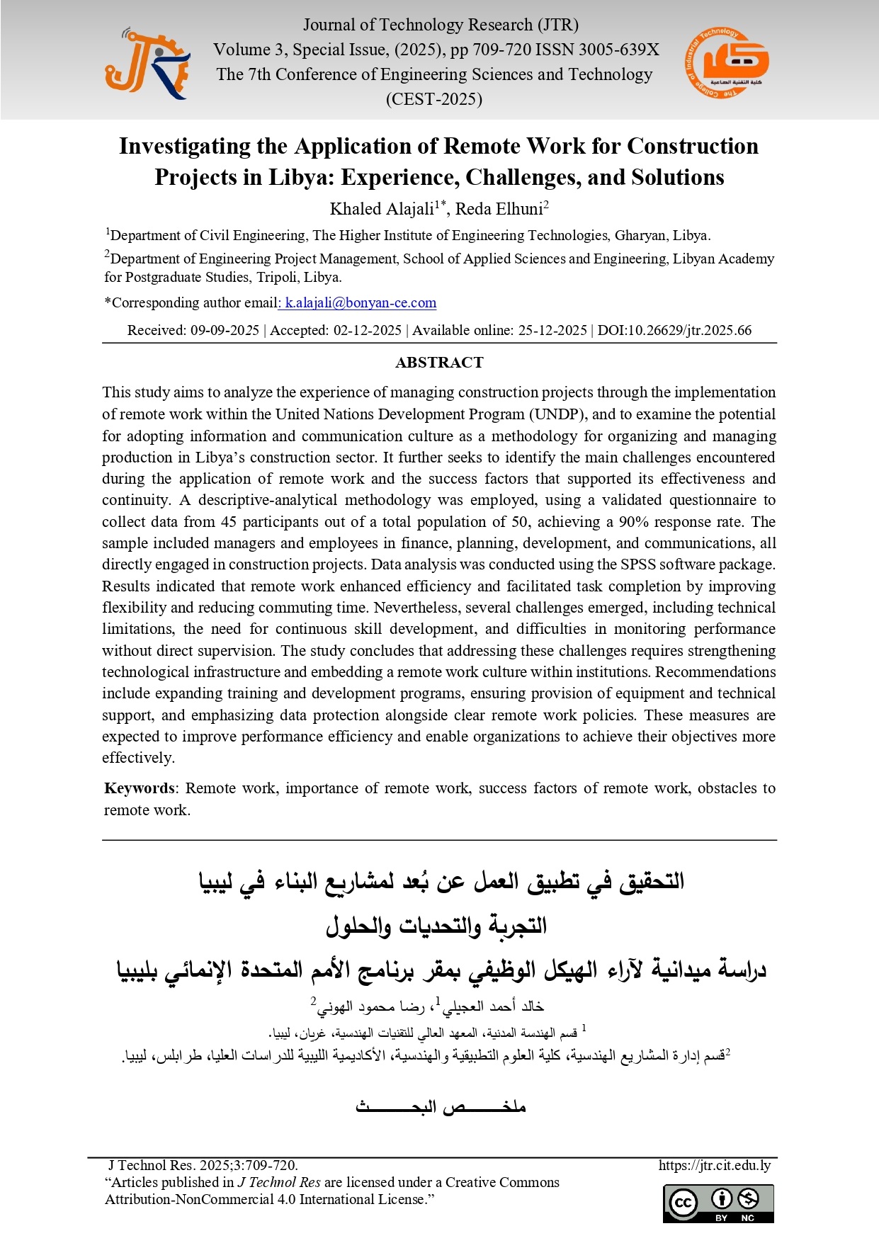 Investigating the Application of Remote Work for Construction Projects in Libya: Experience, Challenges, and Solutions