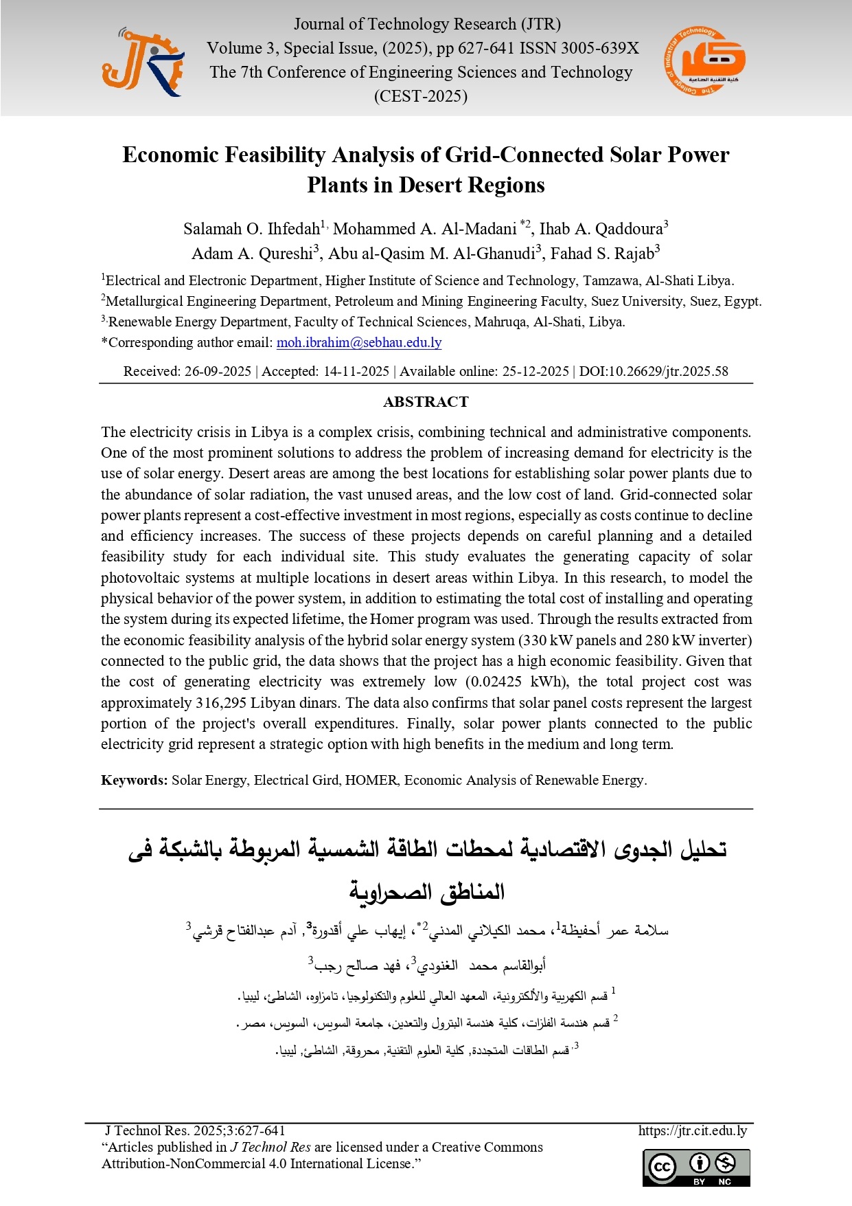 Economic Feasibility Analysis of Grid-Connected Solar Power Plants in Desert Regions