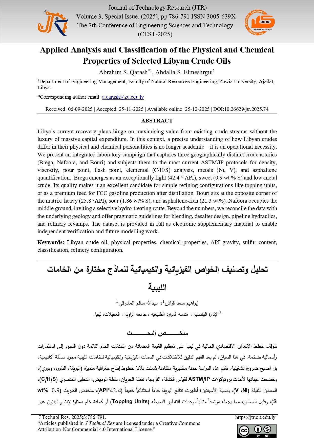 Applied Analysis and Classification of the Physical and Chemical Properties of Selected Libyan Crude Oils