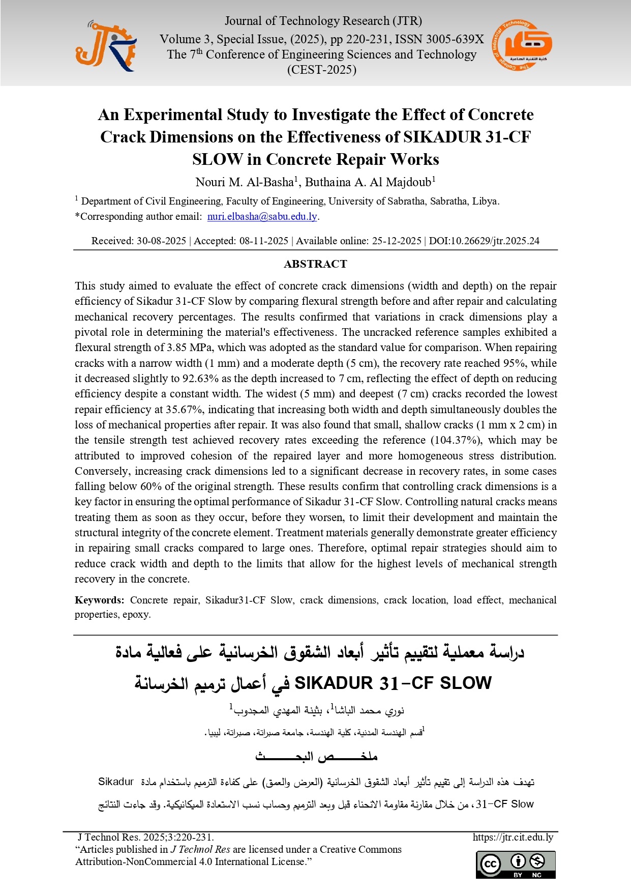 An Experimental Study to Investigate the Effect of Concrete Crack Dimensions on the Effectiveness of SIKADUR 31-CF SLOW in Concrete Repair Works